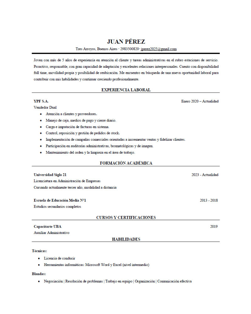 Si querés un CV estructurado, claro y 100 % alineado a estándares internacionales, esta opción es para vos.
